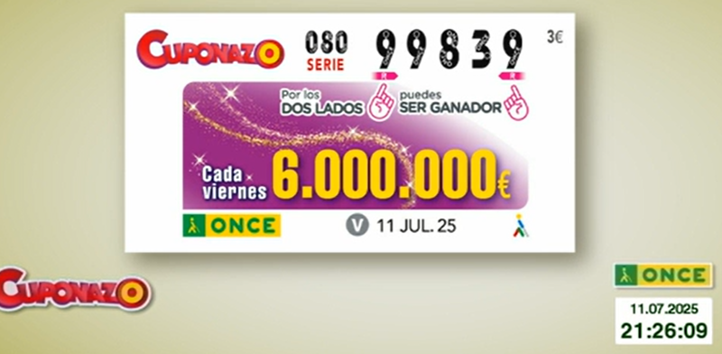 Número ganador del sorteo de la ONCE de hoy 11 de julio