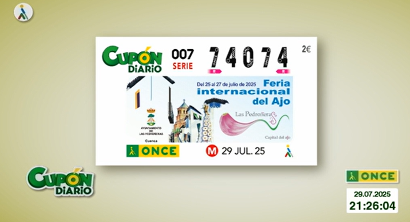 Número ganador del sorteo de la ONCE de hoy 29 de julio