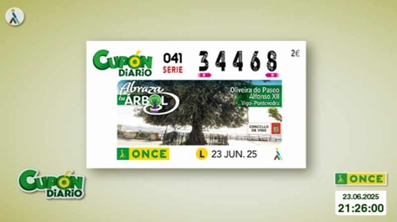 El sorteo del Cupón Diario de la ONCE correspondiente al lunes 23 de junio de 2025, que tuvo como número premiado el 34.468, con la serie correspondiente al 041. Todos los resultados al completo, tanto de hoy como de fechas anteriores, los podrás ver en la web de ESTADIO Deportivo, siendo recomendable su comprobación también en los canales oficiales de la ONCE.