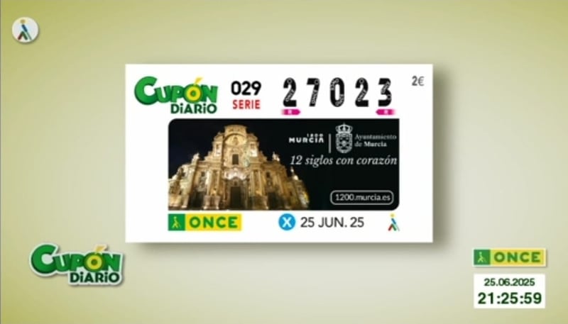 El sorteo del Cupón Diario de la ONCE correspondiente al miércoles 25 de junio de 2025, que tuvo como número premiado el 27.023, con la serie correspondiente al 029. Todos los resultados al completo, tanto de hoy como de fechas anteriores, los podrás ver en la web de ESTADIO Deportivo, siendo recomendable su comprobación también en los canales oficiales de la ONCE.