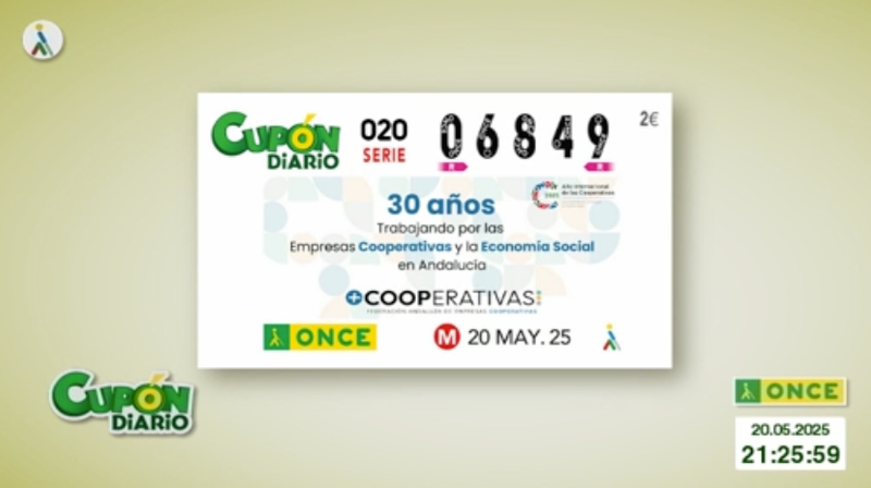 El sorteo del Cuponazo de la ONCE correspondiente al martes 20 de mayo de 2025, que tuvo como número premiado el 06849, con la serie correspondiente al 020. Todos los resultados al completo, tanto de hoy como de fechas anteriores, los podrás ver en la web de ESTADIO Deportivo, siendo recomendable su comprobación también en los canales oficiales de la ONCE.