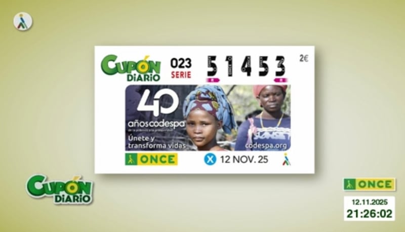 El sorteo del Cupón Diario de la ONCE correspondiente al miércoles 12 de noviembre de 2025 ha tenido como número premiado el 51453 con la serie correspondiente al 023. Todos los resultados al completo, tanto de hoy como de fechas anteriores, los podrás ver en la web de ESTADIO Deportivo, siendo recomendable su comprobación también en los canales oficiales de la ONCE.