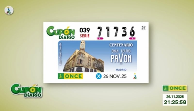 Resultado ONCE: comprobar número del cupón ganador de hoy 26 de noviembre de 2025