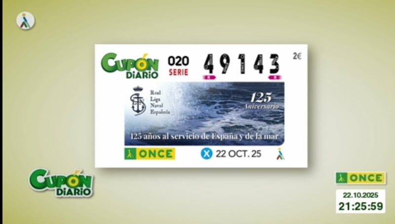 El sorteo del Cupón Diario de la ONCE correspondiente al miércoles 22 de octubre de 2025 ha tenido como número premiado el 49143 con la serie correspondiente al 20. Todos los resultados al completo, tanto de hoy como de fechas anteriores, los podrás ver en la web de ESTADIO Deportivo, siendo recomendable su comprobación también en los canales oficiales de la ONCE.