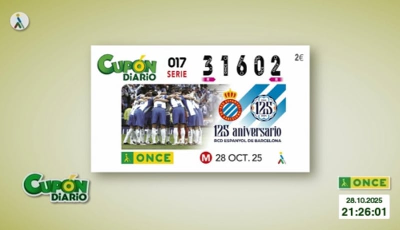 El sorteo del Cupón Diario de la ONCE correspondiente al martes 28 de octubre de 2025 ha tenido como número premiado el 31602 con la serie correspondiente al 17. Todos los resultados al completo, tanto de hoy como de fechas anteriores, los podrás ver en la web de ESTADIO Deportivo, siendo recomendable su comprobación también en los canales oficiales de la ONCE.