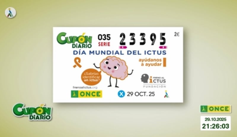 El sorteo del Cupón Diario de la ONCE correspondiente al miércoles 29 de octubre de 2025 ha tenido como número premiado el 23395 con la serie correspondiente al 35. Todos los resultados al completo, tanto de hoy como de fechas anteriores, los podrás ver en la web de ESTADIO Deportivo, siendo recomendable su comprobación también en los canales oficiales de la ONCE.