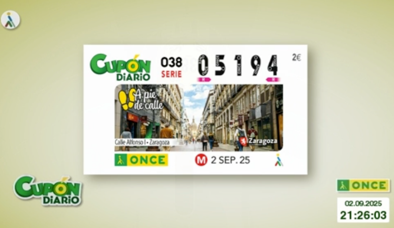 El sorteo del Cuponazo de la ONCE correspondiente al martes 2 de septiembre de 2025 ha tenido como número premiado el 05194 con la serie correspondiente al 38. Todos los resultados al completo, tanto de hoy como de fechas anteriores, los podrás ver en la web de ESTADIO Deportivo, siendo recomendable su comprobación también en los canales oficiales de la ONCE.
