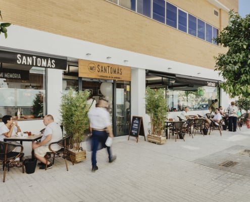 Los establecimientos SanTomás abren todos los días y la bonita decoración y las terrazas que acompañan la estampa del local invitan a sus clientes a alargar la experiencia en él. Las chacinas y los quesos también son clásicos en en el establecimiento, las venden de manera individual y también ofertan tablas que combinan las dos delicatessen, además de otras que fusionan las verduras con el hummus.