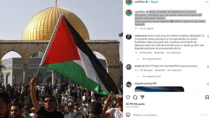 El bético Nabil Fekir abrió la lata con un mensaje en el que se pone de parte de los palestinos. "Apoyo al pueblo de Palestina, a nuestros hermanos y hermanas que han estado sufriendo el apartheid durante demasiado tiempo. Que la justicia y la paz regresen. Allah no ignora lo que están haciendo", publicaba el futbolista verdiblanco.
