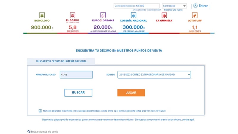 Buscar un décimo en la web de Loterías y Apuestas del Estado
