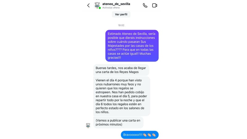 Horas después, desde el Ateneo de Sevilla publicaron una carta enviada por los Reyes Magos.
