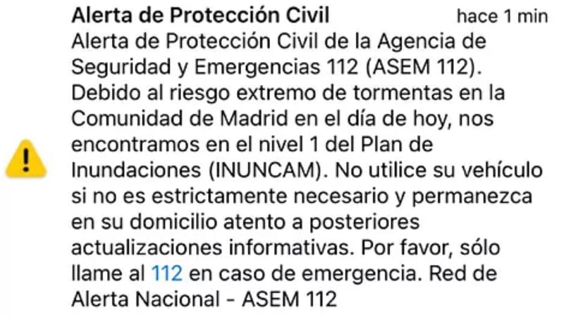 Todos los ciudadanos de Madrid han recibido un mensaje de alerta en sus teléfonos móviles