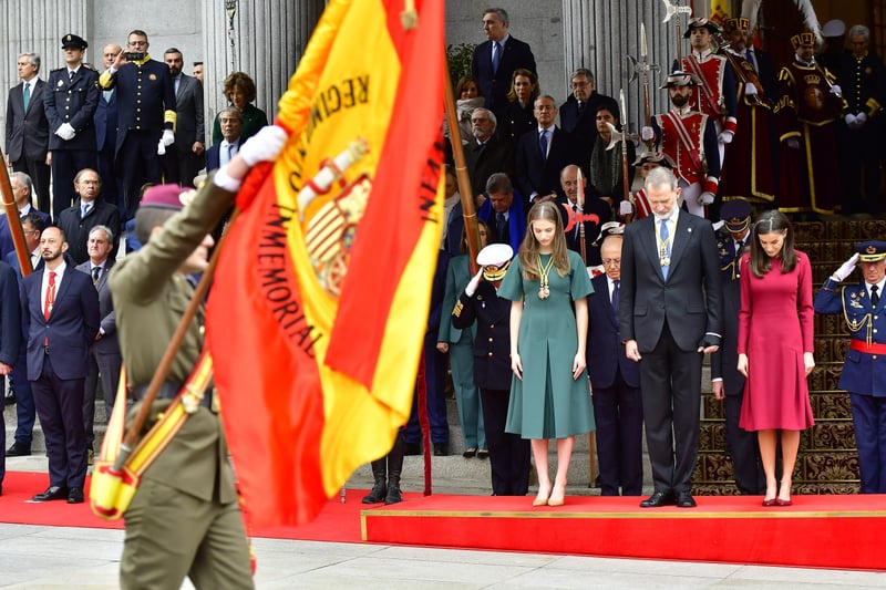 No había paseantes ni curiosos, ya que el Congreso ha estado rodeado por un amplio perímetro de seguridad para evitar incidentes, impidiendo el paso de vehículos y de peatones. Tras recibir honores militares, la comitiva se dirigió a la escalinata del Palacio del Congreso, donde los Reyes y la heredera fueron recibidos por los presidentes del Congreso y del Senado, la socialista Francina Armengol y el 'popular' Pedro Rollán, y por los miembros de las Mesas de ambas cámaras.