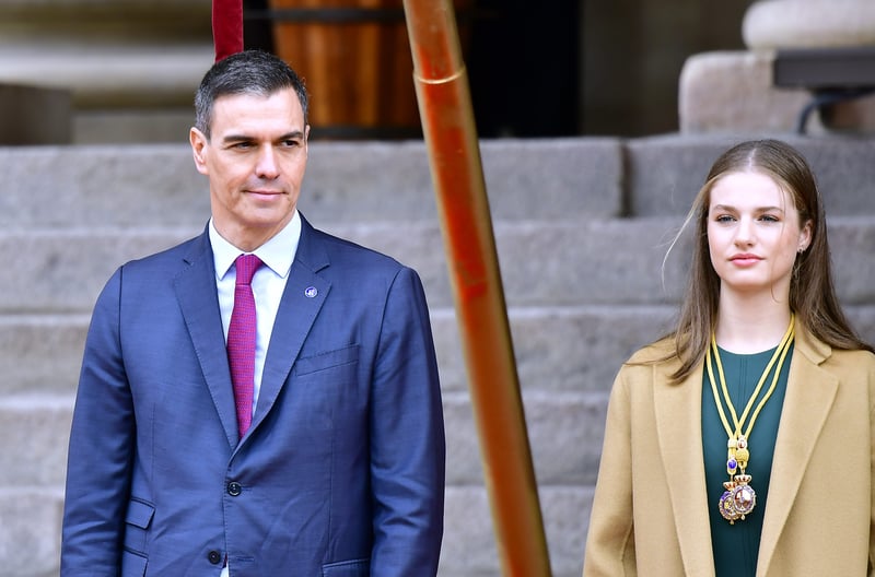 Precedidos por un escuadrón a caballo de la Guardia Real, Los Reyes y la Princesa de Asturias llegaron en sendos vehículos a la Carrera de San Jerónimo poco después de las once de la mañana, y allí les esperaban el presidente del Gobierno, Pedro Sánchez, y el jefe del Estado Mayor de la Defensa (JEMAD), Teodoro Esteban López Calderón.