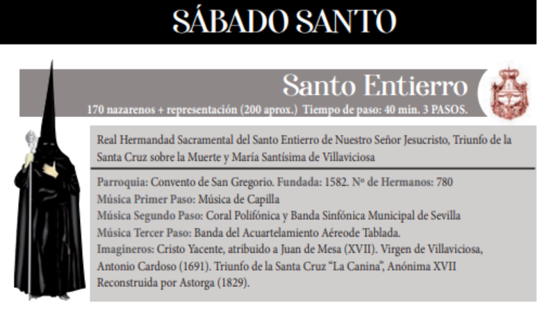 Este programa de mano recoge cada una de las calles por las que los nazarenos y pasos recorrerán en sus estaciones de penitencia. A su vez, la guía presenta datos de interés para el cofrade sobre las hermandades que saldrán en Sevilla desde el Viernes de Dolores hasta el Domingo de Resurrección. Imagineros de los titulares de las hermandades, capataces, bandas de música, año de fundación, parroquia, atuendos y número de nazareno completan la mejor guía de la Semana Santa sevillana. Todo lo que el cofrade necesita para no perderse ni un detalle de la semana más bonita de la capital andaluza.