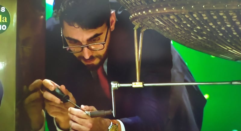 Hay que parar el sorteo porque la palanca de uno de los bombos se ha quedado parada. Lo solucionan y siguen