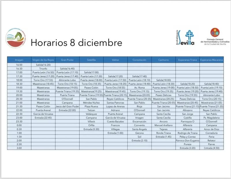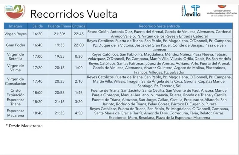 - Nuestra Señora de Valme (Dos Hermanas): Salida 17:20.