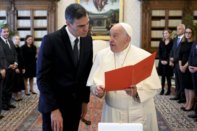 La audiencia del papa con Pedro Sánchez ha sido la segunda, ya que el pontífice recibió al presidente del Gobierno y a una delegación de la que formaba parte su esposa, Begoña Gómez, el 24 de octubre de 2020. Una reunión en la que se abordaron diversas cuestiones políticas, los problemas que en ese momento seguía provocando la pandemia y sus consecuencias económicas y sociales, la educación y la migración.