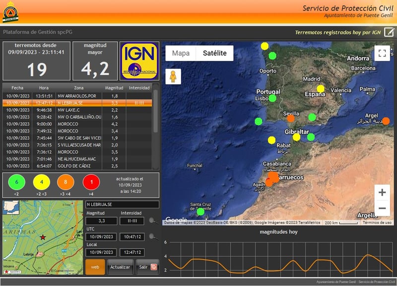 Este pasado sábado se registró las 23:24 horas un temblor con epicentro en Castillo de Locubín (Jaén) que registró la misma intensidad que el de esta mañana (3,3 en la escala Richter). Por suerte para todos los ciudadanos que estén en los lugares donde se ha registrado el seísmo, la intensidad del mismo no se ha acercado al producido en Marruecos (6,8 en la escala Richter).