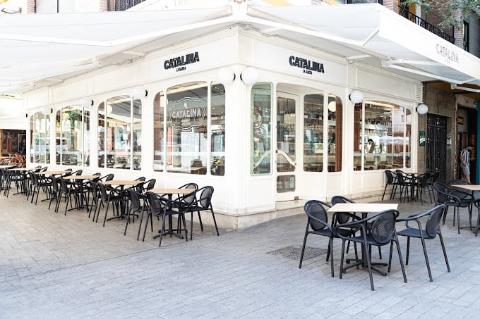 Catalina La Barra ofrece una cristalera en una calle con mucha aglomeración como la Plaza de la Alfalfa, por donde pasan multitud de cofradías. Se trata de un bar sin estridencias, donde disfrutar de un tapeo de calidad y poder ver en primera línea el ambiente cofrade de Sevilla.