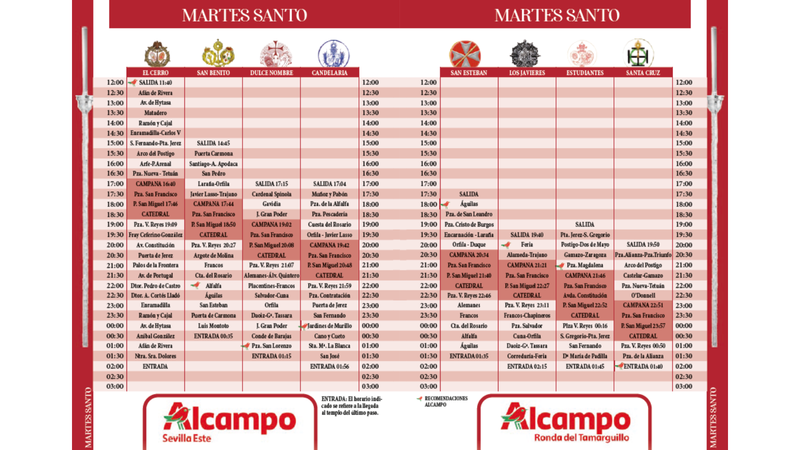 Itinerario y horarios del Martes Santo en Sevilla