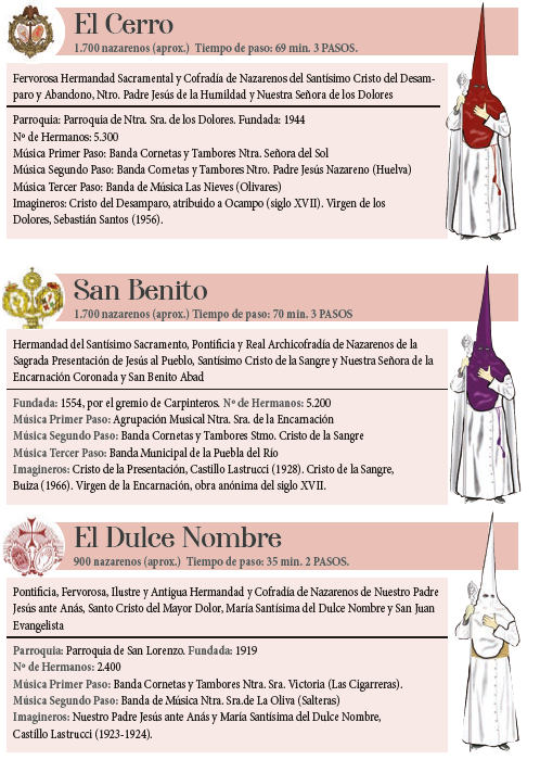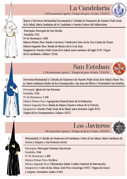 Este martes 26 de marzo hacen su estación de penitencia El Cerro, San Benito, El Dulce Nombre, La Candelaria, San Esteban, Los Javieres, Los Estudiantes y Santa Cruz