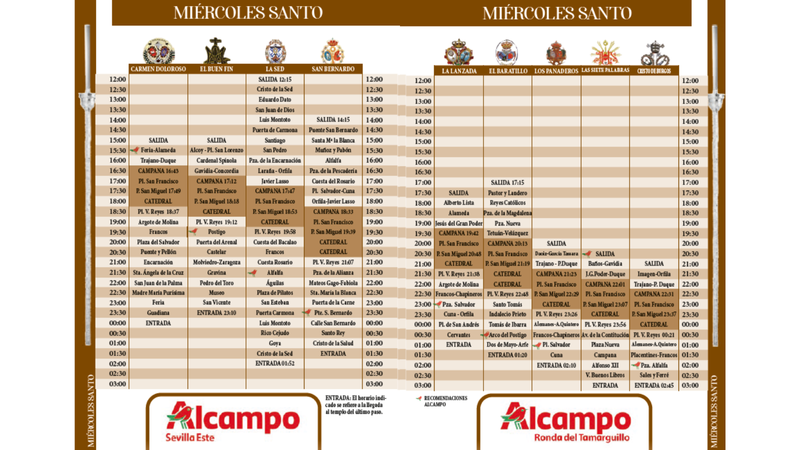 Itinerario y horarios del Miércoles Santo en Sevilla