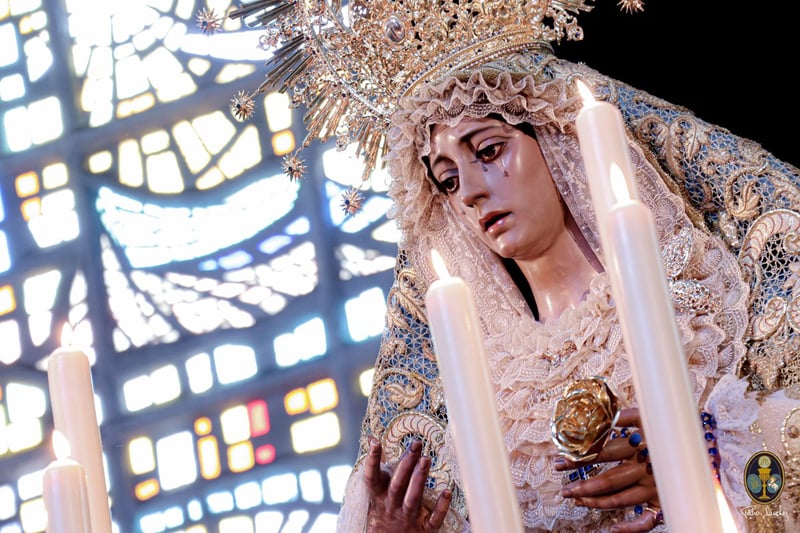 La Milagrosa (Ciudad Jardín). Jesús de la Esperanza y Virgen del Rosario: Salida (16:30) Parroquia de la Milagrosa, Avda. de La Ciudad Jardín, Cardenal Rodrigo de Castro, Antonio de Nebrija, Almotamid, Arzobispo Salcedo, Alfonso XI, Gran Plaza, avda de Eduardo Dato, Hospital de San Juan de Dios, calle San Juan de Dios, Espinosa y Cárcel, Santa María Mazzarello, Villegas Marmolejo, parque Federico García Lorca, Marqués de Nervión, Fernández de Ribera, avda de La Ciudad Jardín y recogida (0:00).
