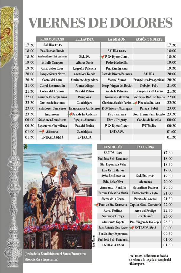 Itinerario y horarios del Viernes de Dolores en Sevilla