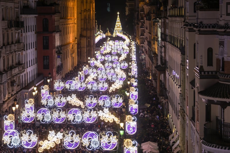 Sevilla enciende sus luces de Navidad en medio de la multitud