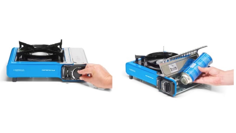 Si por el contrario no quieres depender exclusivamente de la electricidad, es muy útil también para estos casos el disponer de un camping gas o hornillo, lo que te permitirá cocinar algo rápido o calentar agua para posibles duchas.
