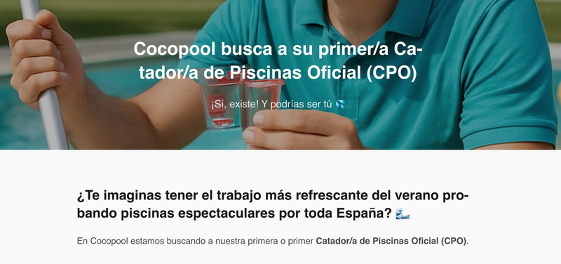 La empresa Cocopool busca un catador de piscinas oficial (CPO) para los meses de agosto y septiembre. El seleccionador probará algunas de las mejores piscinas disponibles en dicha plataforma, ya que Cocopool se dedica al alquiler de piscinas privadas.