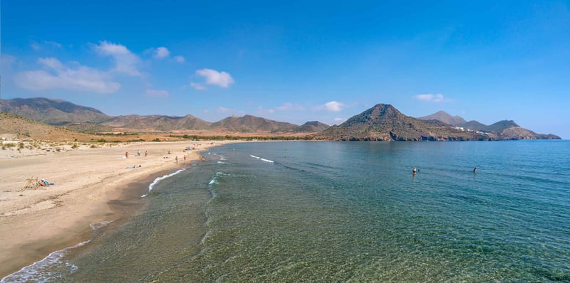 Dentro del Parque Natural de Cabo de Gata se encuentra esta playa que todavía parece virgen, ya que está rodeada únicamente de naturaleza. Muy cerca de ella está el Gata Camper Park, donde caben 50 autocaravanas que pueden pernoctar allí por solamente 7 euros, precio que incluye el cambio de aguas. También tiene otros servicios como duchas, lavadora o barbacoa.