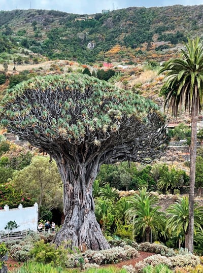 Se trata del Drago Milenario, uno de los ejemplares de Dracaena Draco, considerado como uno de los seres vivos más viejos del mundo. Se estima que podría tener una edad de unos ml años, con una altura de 22 metros y una base que podría superar los diez metros de perímetro. Se estima que podría pesar en torno a las 140 toneladas. Sin duda es un ejemplar más que destacado, dentro del Parque del Drago y considerado como un uno de los Monumentos Nacionales de nuestro país.