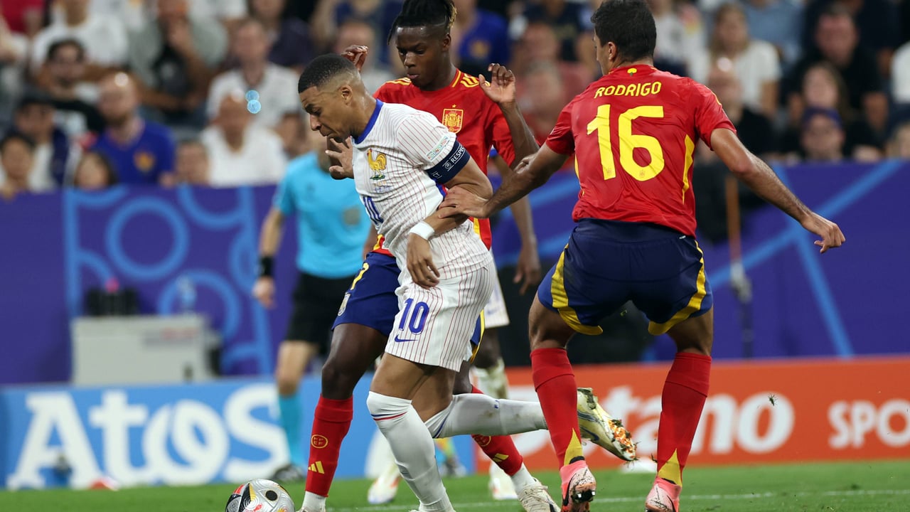 Rodri y Nico Williams tratan de frenar a MbappéCordon press