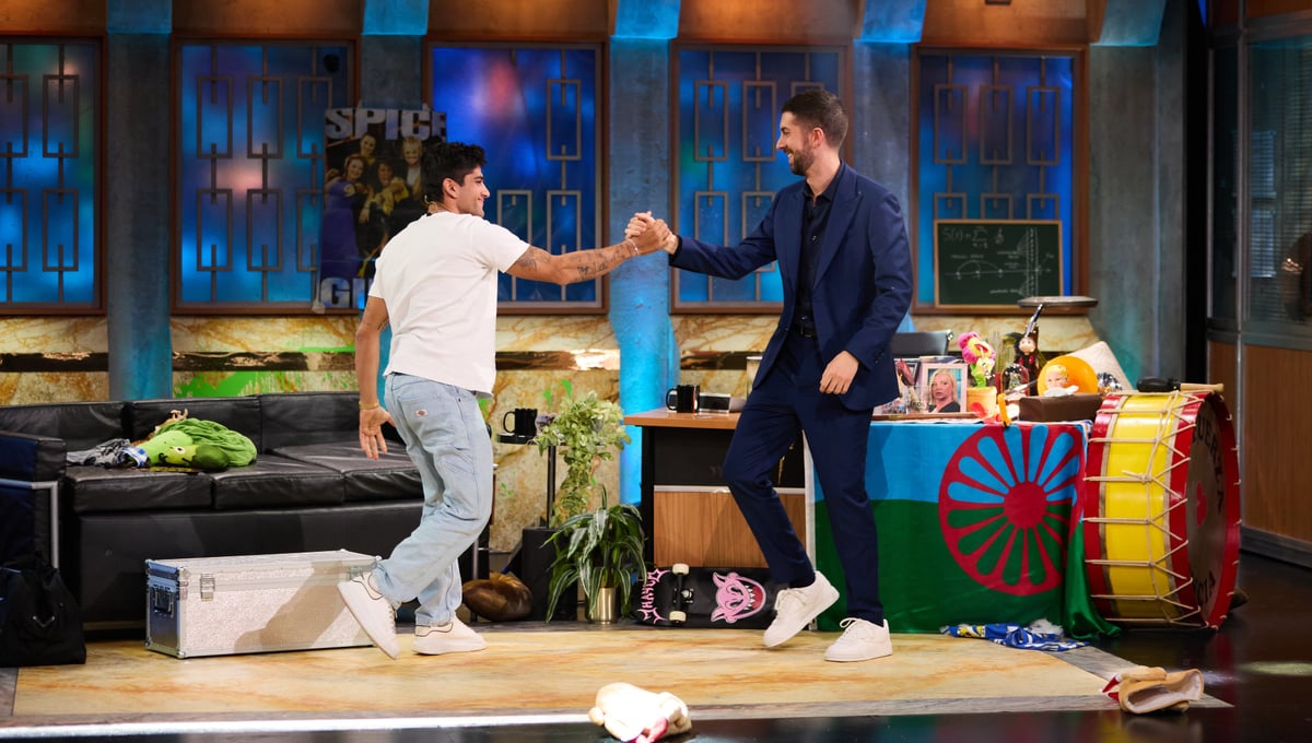 "Una cosa es la lucha de audiencias y otra pegar a la gente", bromeaba Jorge Martín. "Vaya semana guapa, Jorge, en una semana has sido campeón del mundo, invitado de televisión, cortina de humo, rehén...", añadía Broncano. El piloto más tarde explicó que había estado entrenando motocross, precisamente hoy con Marc Márquez, y que había sufrido una caida. De hecho, más tarde iba a enseñar también su brazo con algunos rasguños.