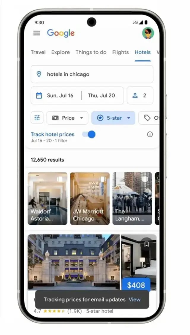 "Si ya usas Google Flights para recibir alertas sobre caídas de precios, ahora puedes hacer lo mismo para los hoteles. Si está navegando en google.com/hotels, verá una nueva opción para rastrear los precios de las fechas y el destino elegidos", dice Google en su blog, en la entrada dedicada a los "5 consejos para la preparación de viajes de verano".