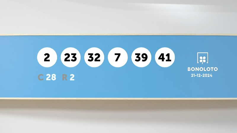 Los números agraciados en el sorteo de la Bonoloto del sábado 21 de diciembre de 2024 son los siguientes: 2, 23, 32, 7, 39 y 41. El número complementario es el 28 y el reintegro el 2. En el sorteo ayer hubo un acertante de primera categoría que se llevó más de cuatro millones de euros. También hubo 14 acertantes de segunda categoría que se llevaron más de 13.500 euros cada uno. El bote de este sábado es la parte proporcional de la recaudación.