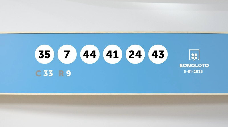 Los números agraciados en el sorteo de la Bonoloto del domingo 5 de enero de 2025 son los siguientes: 35, 7, 44, 41, 24 y 43. El número complementario es el 33 y el reintegro el 9. En el sorteo ayer no hubo acertantes de primera categoría, pero sí que hubo uno de segunda categoría que se llevó más de 140.200 euros. El bote de este domingo es de 600.000 euros.