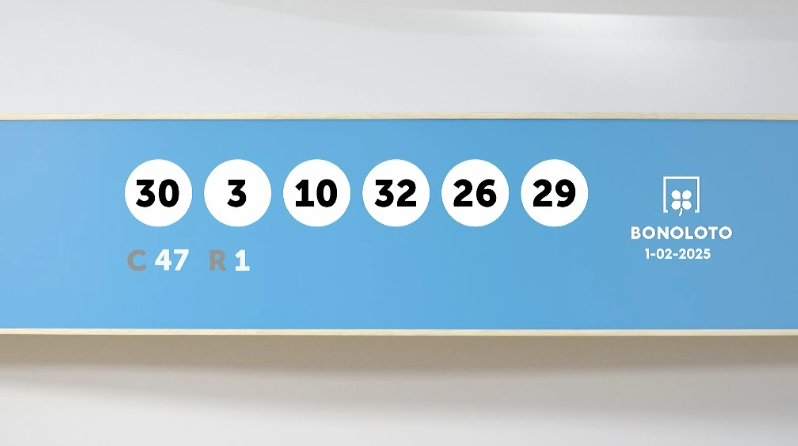 Los números agraciados en el sorteo de la Bonoloto del sábado 1 de febrero de 2025 son los siguientes: 30, 3, 10, 32, 26, 29. El número complementario es el 47 y el reintegro el 1. En el sorteo ayer hubo un acertante de primera categoría que se llevó más de 430.000 euros, pero además hubo tres acertantes de segunda categoría que se llevaron más de 52.000 euros cada uno. El bote de este sábado es la parte proporcional de la recaudación.