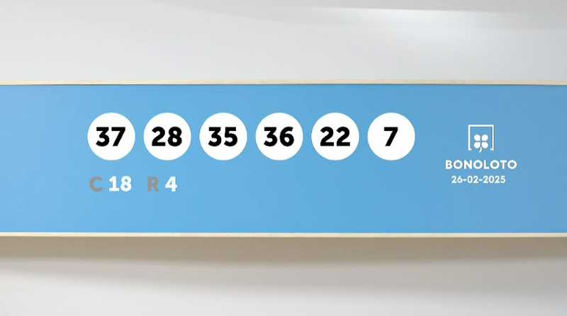 Los números agraciados en el sorteo de la Bonoloto del miércoles 26 de febrero de 2025 son los siguientes: 37, 28, 35, 36, 22 y 7. El número complementario es el 18 y el reintegro el 4. En el sorteo de ayer no hubo acertantes de primera categoría, pero sí que hubo un acertante de segunda categoría que se llevó más de 171.000 euros cada uno. El bote de hoy es de 1.900.000 euros.