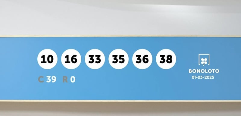 Los números agraciados en el sorteo de la Bonoloto del sábado 1 de marzo de 2025 son los siguientes: 10, 16, 33, 35, 36, 38. El número complementario es el 39 y el reintegro el 0. En el sorteo de ayer no hubo acertantes de primera categoría, pero sí que hubo tres acertantes de segunda categoría que se llevaron más de 61.000 euros cada uno. El bote de hoy es de 3.500.000 euros.