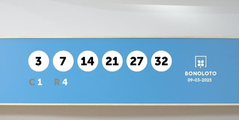 Los números agraciados en el sorteo de la Bonoloto del domingo 9 de marzo de 2025 son los siguientes: 3, 7, 14, 21, 27, 32. El número complementario es el 1 y el reintegro el 4. En el sorteo de ayer no hubo acertantes ni de primera ni de segunda categoría. El bote de hoy es de 1.000.000 euros.
