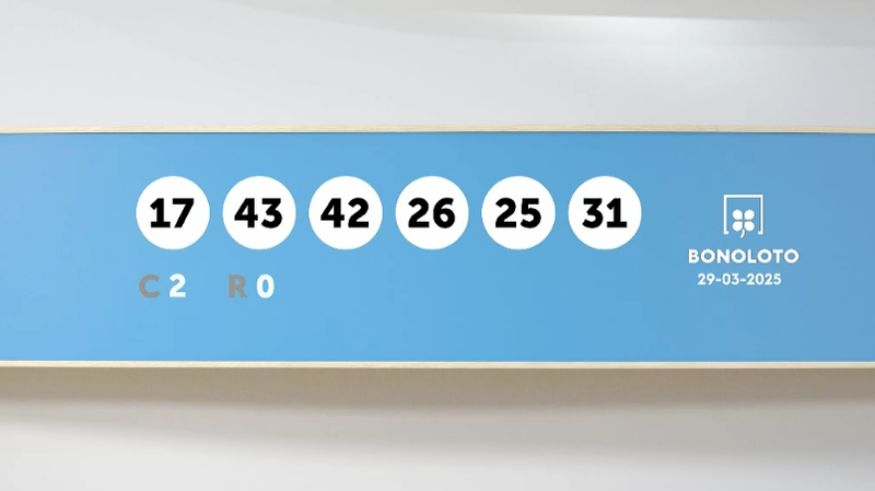 Los números agraciados en el sorteo de la Bonoloto del sábado 29 de marzo de 2025 son los siguientes: 17, 43, 42, 26, 25, 31. El número complementario es el 2 y el reintegro el 0. En el sorteo de ayer no hubo acertantes de primera categoría, pero sí que hubo dos acertantes de segunda categoría que se llevaron un bote de más de 69.000 cada uno. El bote de hoy es de 600.000 euros.