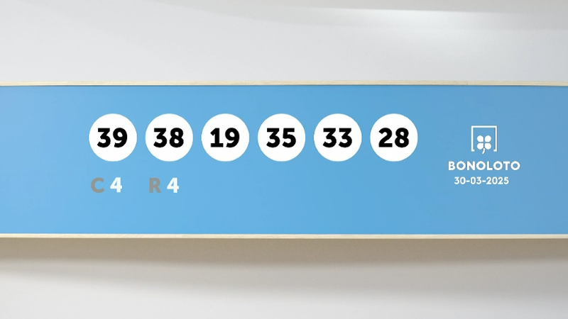 Los números agraciados en el sorteo de la Bonoloto del domingo 30 de marzo de 2025 son los siguientes: 39, 38, 19, 35, 33, 28. El número complementario es el 4 y el reintegro el 4. En el sorteo de ayer no hubo acertantes de primera categoría, pero sí que hubo tres acertantes de segunda categoría que se llevaron un bote de más de 48.000 cada uno. El bote de hoy es de 1.000.000 euros.