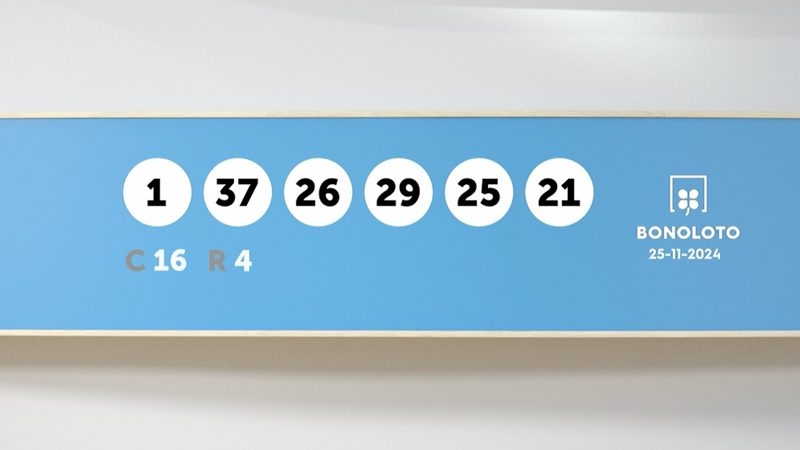 Los números agraciados en el sorteo de la Bonoloto del lunes 25 de noviembre de 2024 son los siguientes: 1, 37, 26, 29, 25, 21. El número complementario es el 16 y el reintegro el 4. En el sorteo de ayer no hubo acertantes de primera categoría ni de segunda categoría, pero sí que hubo 63 acertantes de tercera categoría que se llevaron cada uno un premio de más de 2.400 euros.