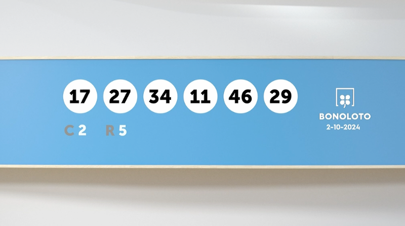 Los números agraciados en el sorteo de la Bonoloto del miércoles 2 de octubre de 2024 son los siguientes: 17, 27, 34, 11, 46 y 29. El número complementario es el 2 y el reintegro el 5. En el sorteo de ayer martes no hubo acertantes de primera categoría ni tampoco de segunda, pero sí que hubo 111 de tercera categoría. El bote de este miércoles es de 900.000 euros.
