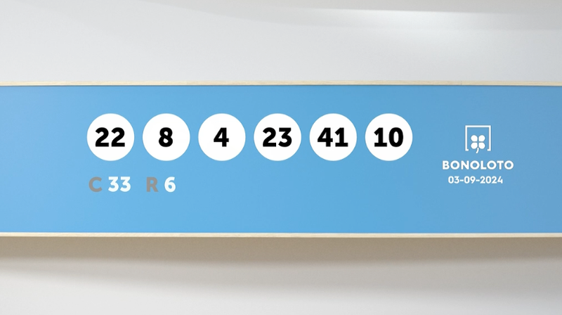 Los números agraciados en el sorteo de la Bonoloto del martes 3 de septiembre de 2024 son los siguientes: 22, 8, 4, 23, 41 y 10. El número complementario es el 33 y el reintegro el 6. En el sorteo de ayer lunes no hubo acertantes de primera categoría, pero sí dos de segunda que se llevaron más de 60.000 euros cada uno. El bote de este martes es de 900.000 euros.