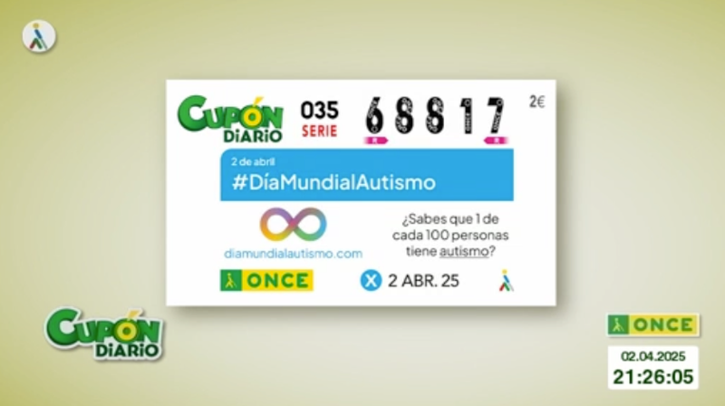 El sorteo del Cupón Diario de la ONCE correspondiente al miércoles 2 de abril de 2025 tuvo como número premiado el 68817, con la serie correspondiente al 035. Todos los resultados al completo, tanto de hoy como de fechas anteriores, los podrás ver en la web de ESTADIO Deportivo, siendo recomendable su comprobación también en los canales oficiales de la ONCE.