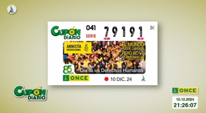 El sorteo del Cupón Diario de la ONCE correspondiente al martes 10 de diciembre de 2024 tuvo como número premiado el 79191, con la serie correspondiente al 041. Todos los resultados al completo, tanto de hoy como de fechas anteriores, los podrás ver en la web de ESTADIO Deportivo, siendo recomendable su comprobación también en los canales oficiales de la ONCE.